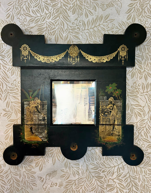 Aesthetic Movement Gilt Decorated Ebonised Wall Mirror
