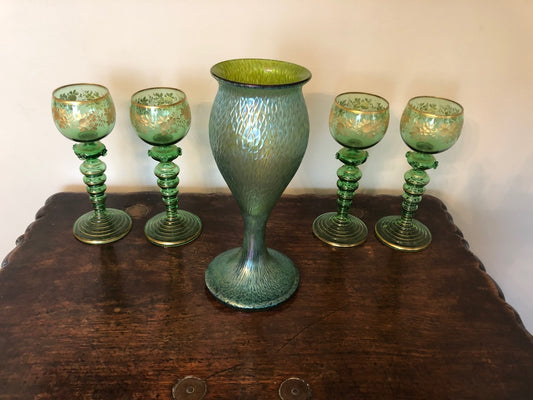 Four Continental Engraved and Gilt Green Glass Roemers, c.1900