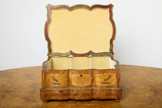 French Marquetry and Inlaid Burl, Fruitwood, and Kingwood Dresser Box