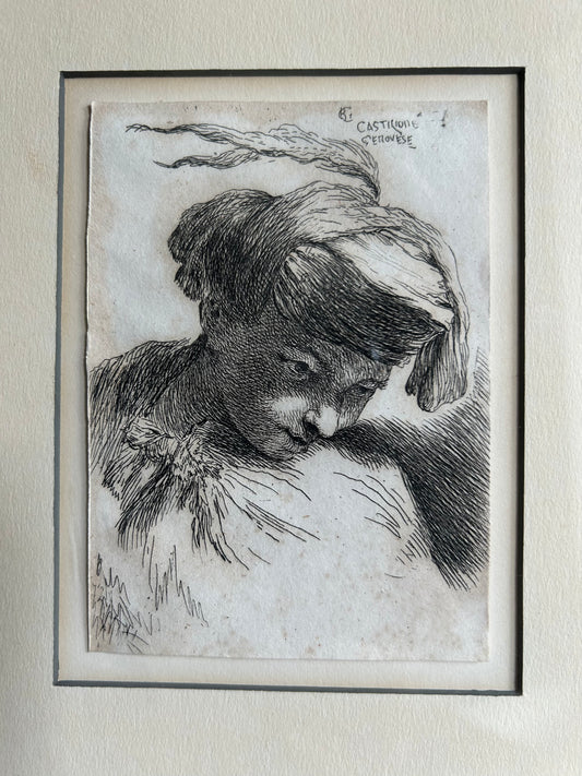 Giovanni Benedetto Castiglione, 1609-1664, Young Man, Etching Circa 1640