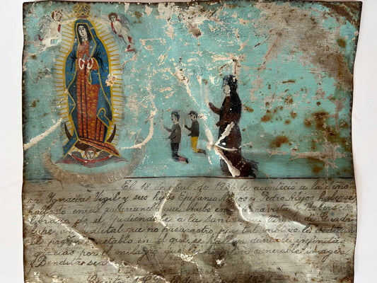 Antique Mexican Retablo "Exvoto" Oil on Tin, 1936
