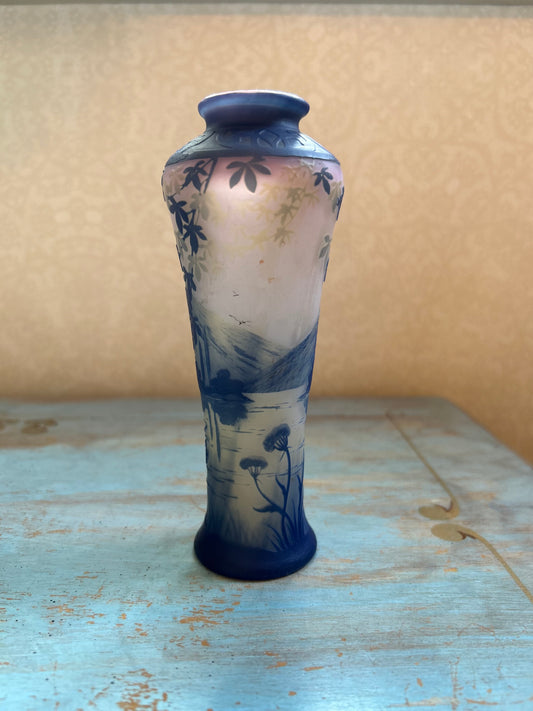 Art Nouveau Etched Glass Cameo Vase signed Devez