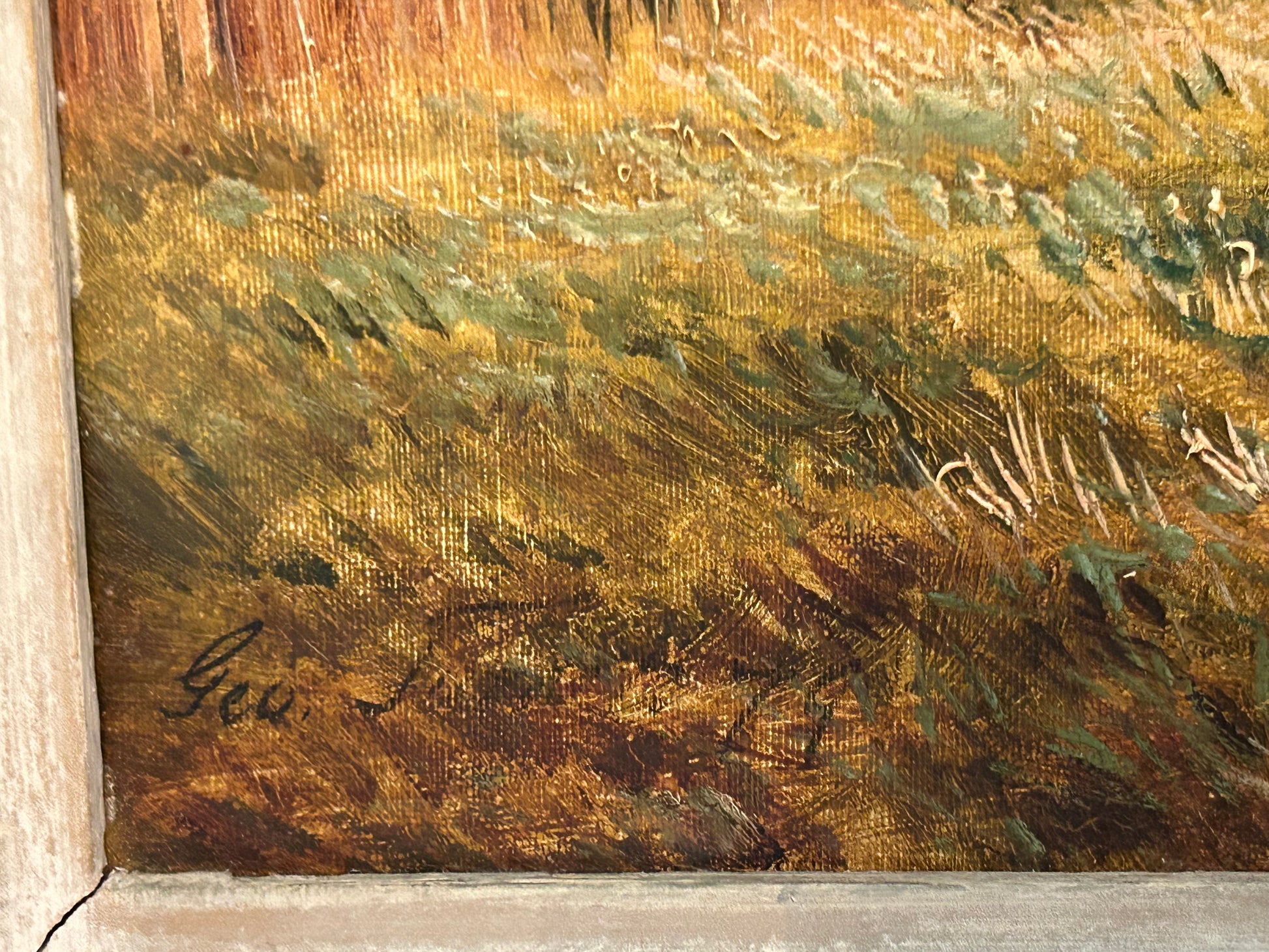 Framed in a substantial wood frame, softly gilded and highlighted with tones of white and pale green.