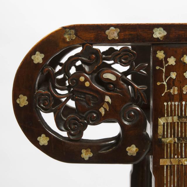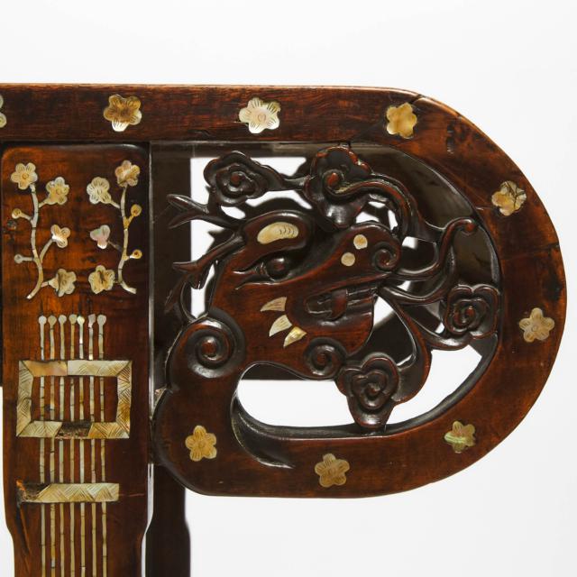 Lovely delicate inlay all over this piece, with dragon details carved into the scrolls.