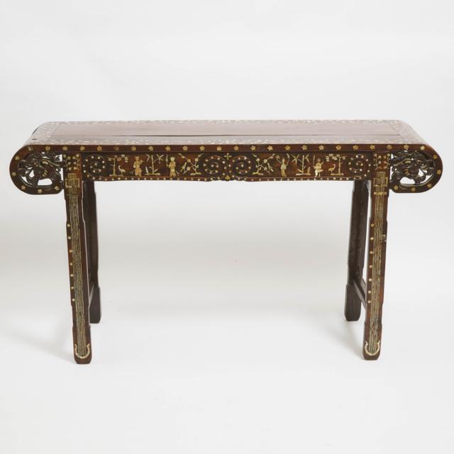 A Mother-of-Pearl Inlaid Rosewood Altar Table, Late Qing Dynasty (1800's)