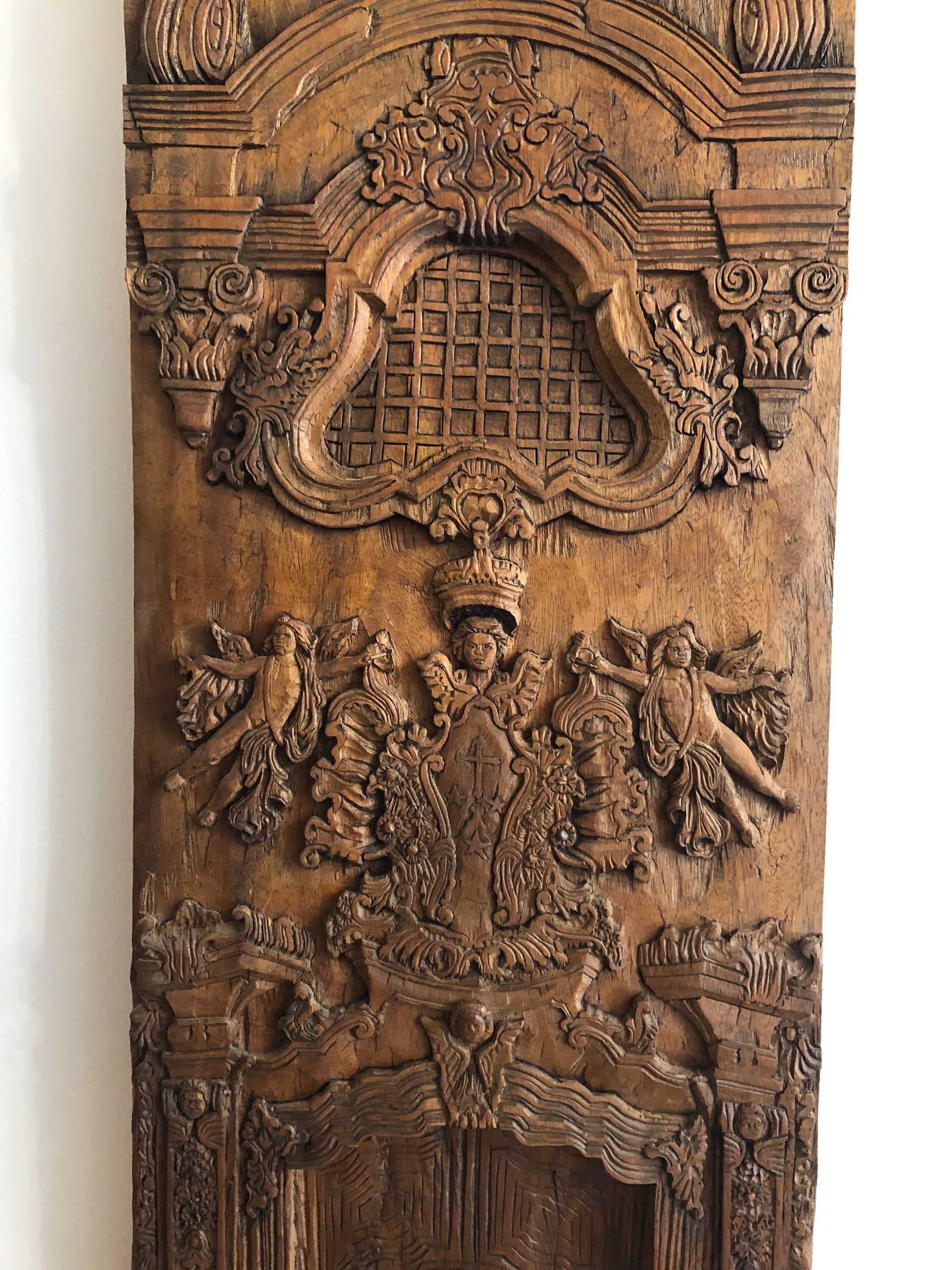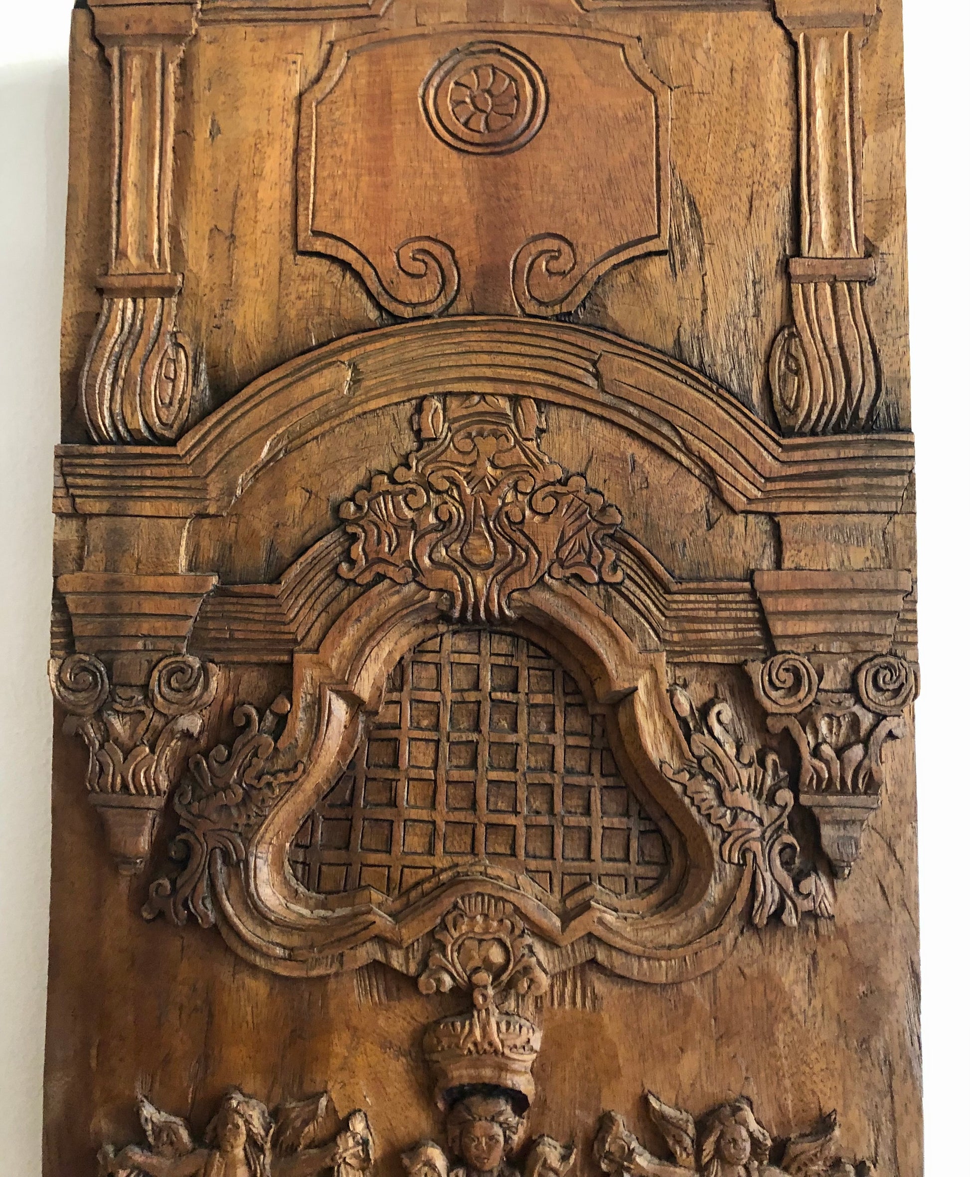 Classical carved Oak Wall Panel, Bas-relief, facade of a church