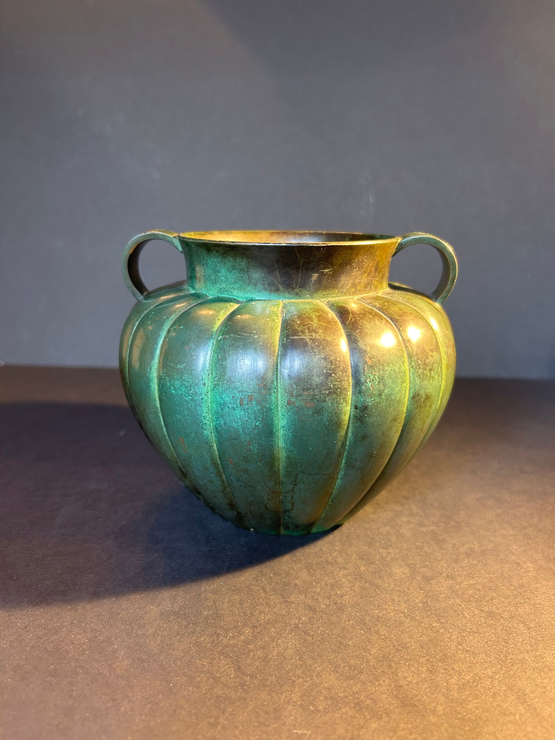 Mid Century Green Patinated Bronze Vase, GAB Guldsmedsaktiebolaget , Stockholm