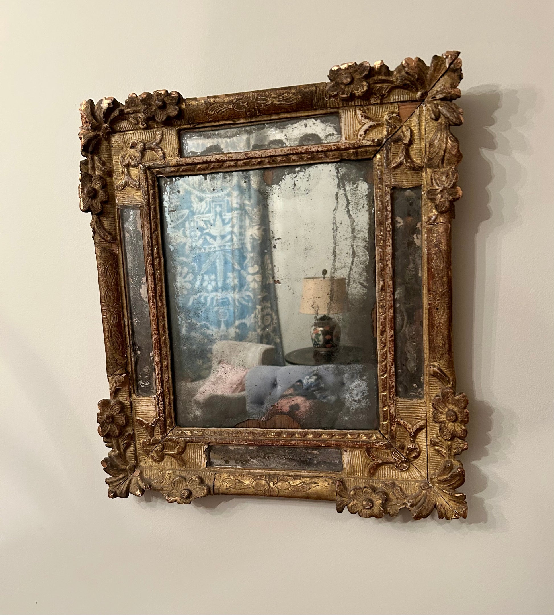 A rare and exquisite Régence small French parclose mirror, circa 1725. This piece has retained all of its mercury glass and has a beautiful patina. A true historical piece.