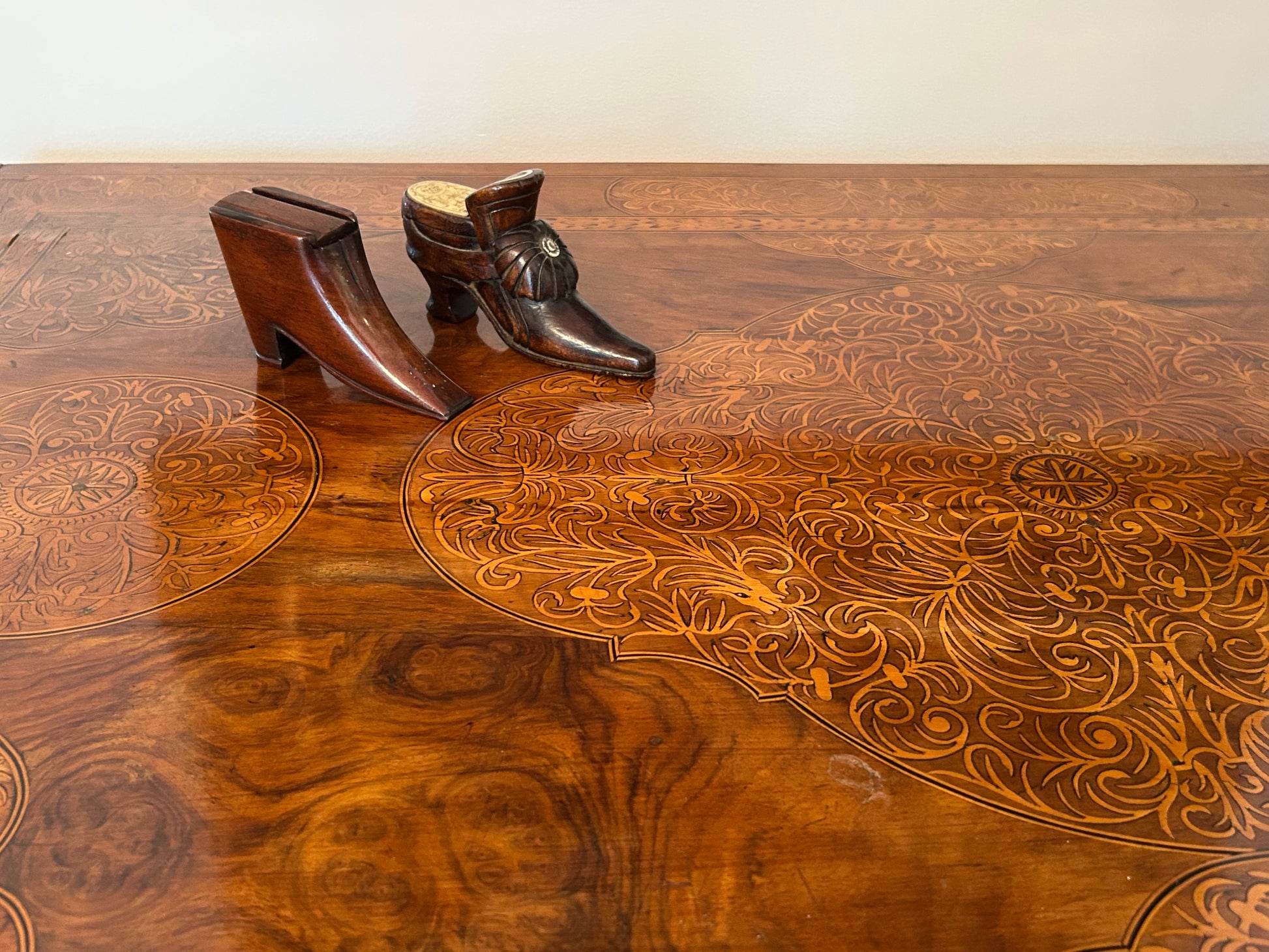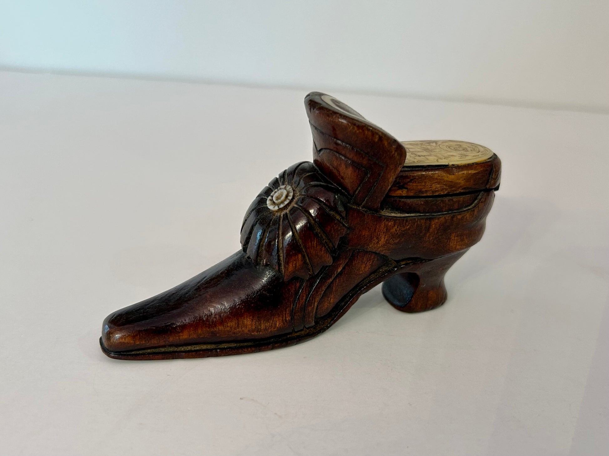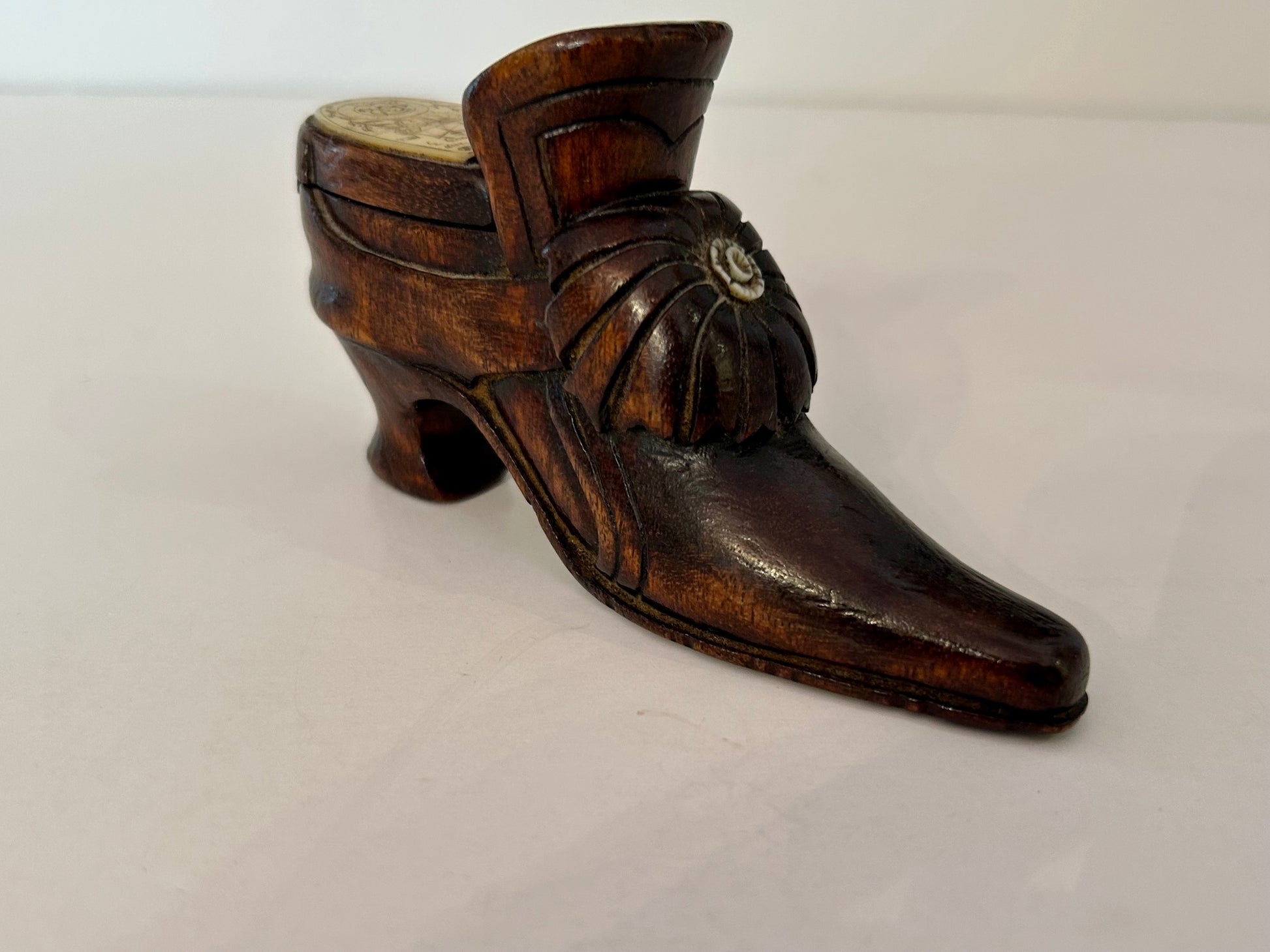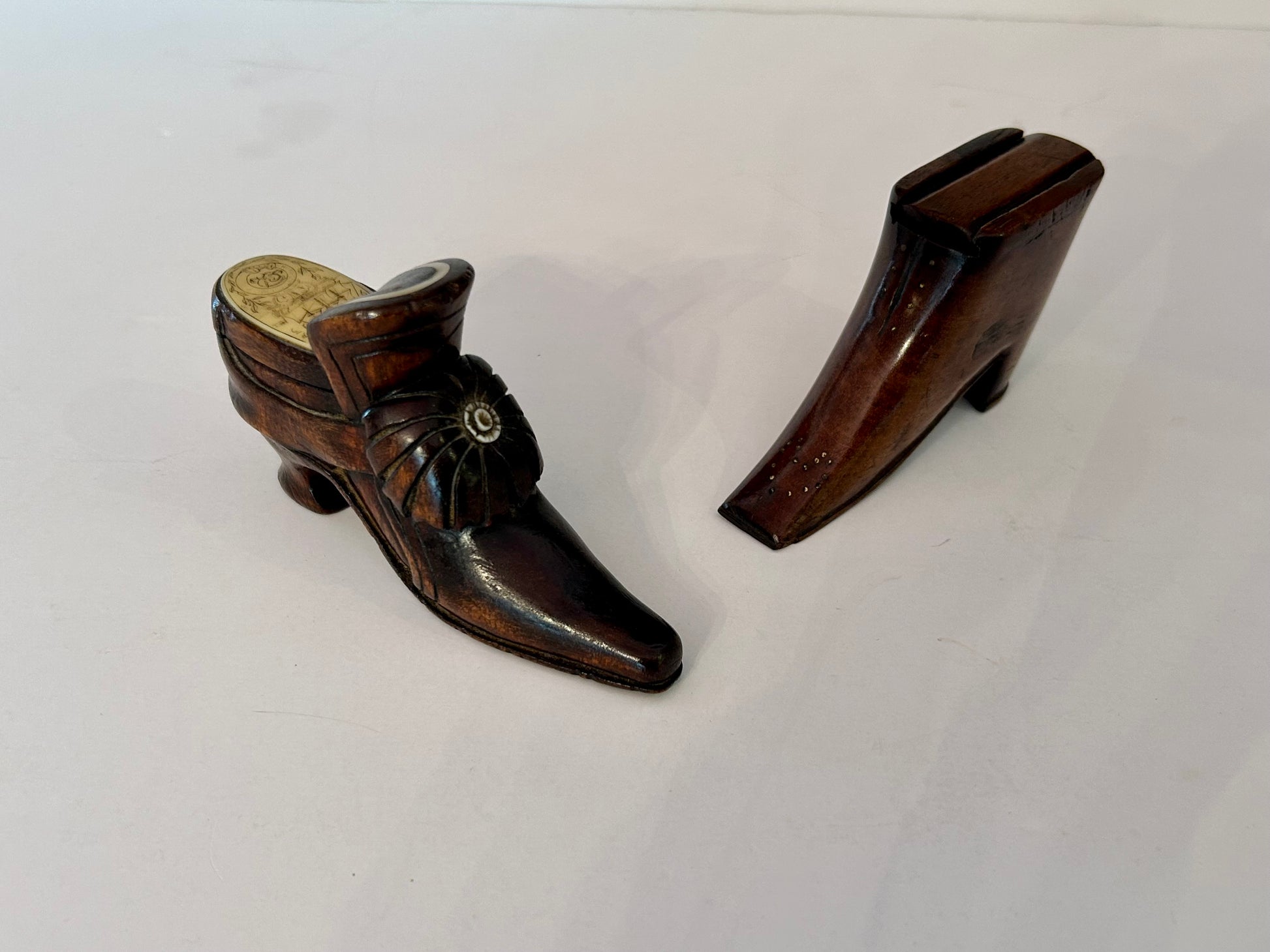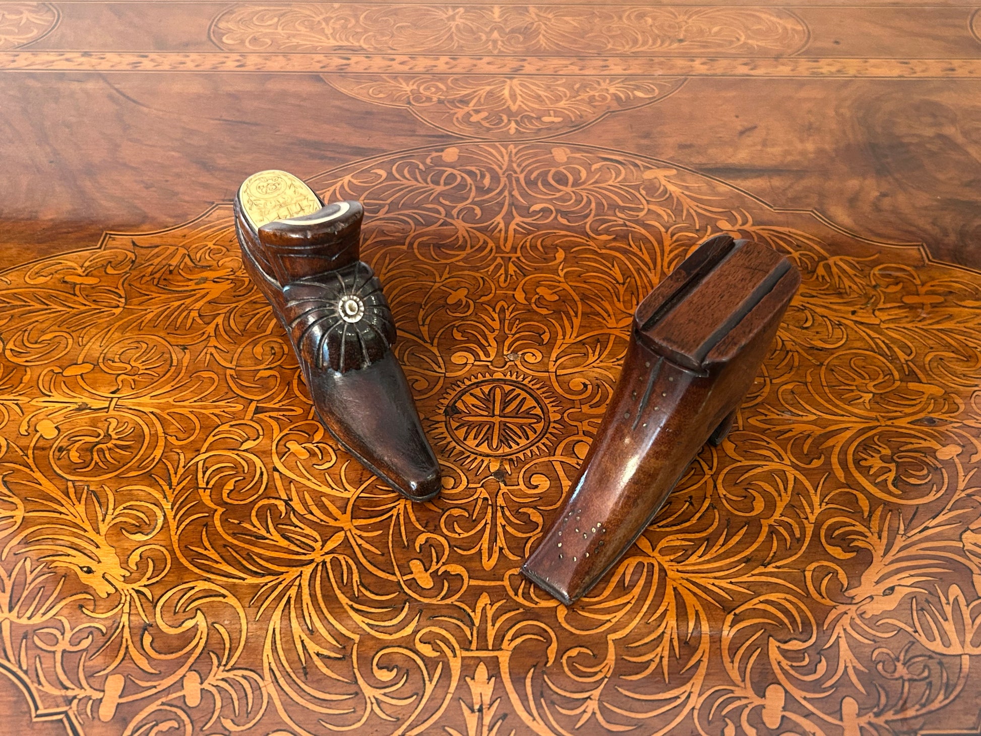 Two wonderful antique, figural snuff boxes in the form of heeled boots. Dutch, most probably from the late 18th century or early 19th century.