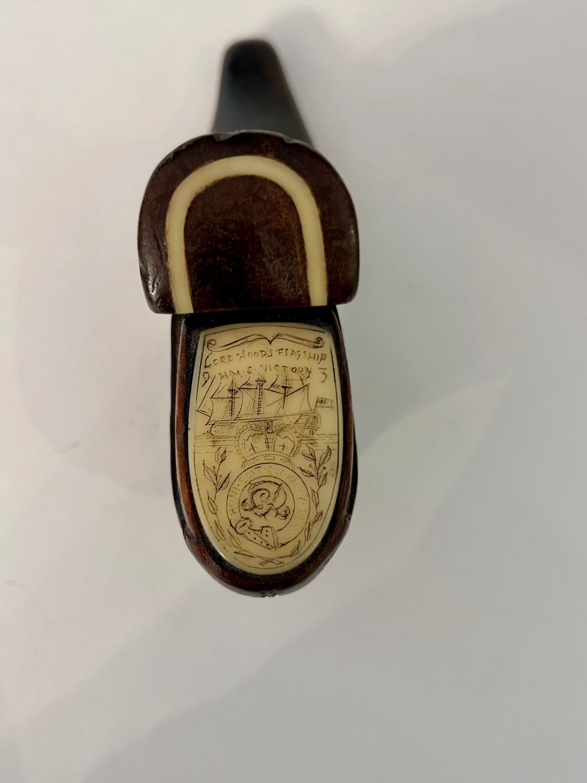 The plaque reads: 'Lord Hood's Flagship H.M.S. Victory' and has a miniature rendering of the vessel. Sold as a pair.