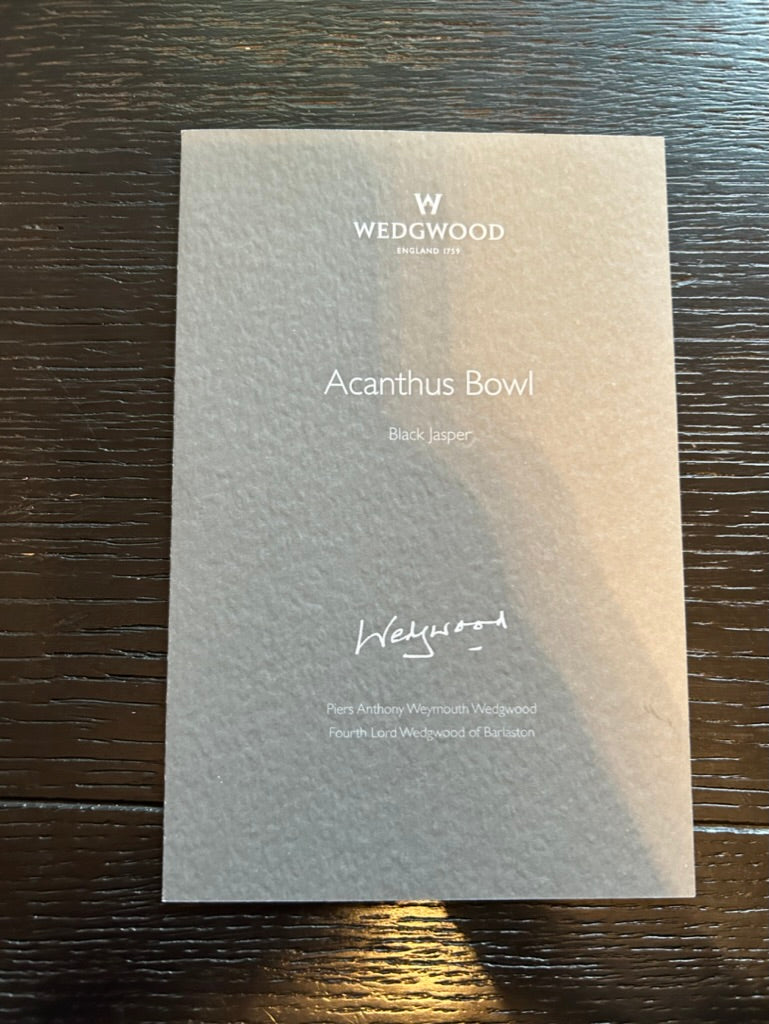 This bowl was made to commemorate the 250th Anniversary of Wedgwood. It comes in an original gift box which also includes a small book describing the history of Wedgwood porcelain and the story of the Acanthus Bowl in particular.